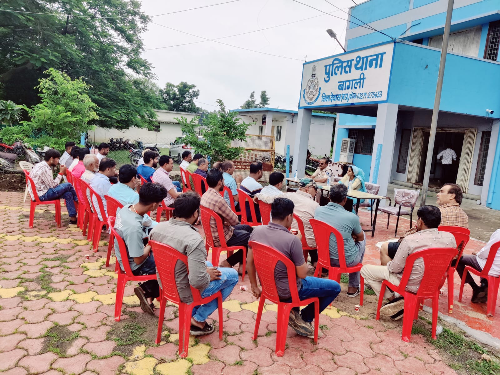त्योहारों पर शांति और सद्भाव बनाए रखने को लेकर थाना परिसर में शांति समिति की बैठक आयोजित