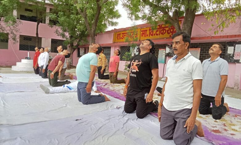 टोंकखुर्द (विजेंद्रसिंह ठाकुर)। अंतरराष्ट्रीय योग दिवस के अवसर पर सीएम राइज उत्कृष्ट विद्यालय टोंकखुर्द में नगर परिषद अध्यक्ष प्रतिनिधि ठाकुर महेंद्रसिंह चावड़ा, समाजसेवी विमलकुमार साकला, डॉ. अनारसिंह ठाकुर, मंडल अध्यक्ष राजेंद्र पटेल व विद्यार्थियों ने सामूहिक रूप से योग किया। प्राचार्य दामेचा ने बताया, कि योग भारत की प्राचीन परंपरा का एक अमूल्य उपहार है। यह दिमाग और शरीर की एकता का प्रतीक है।