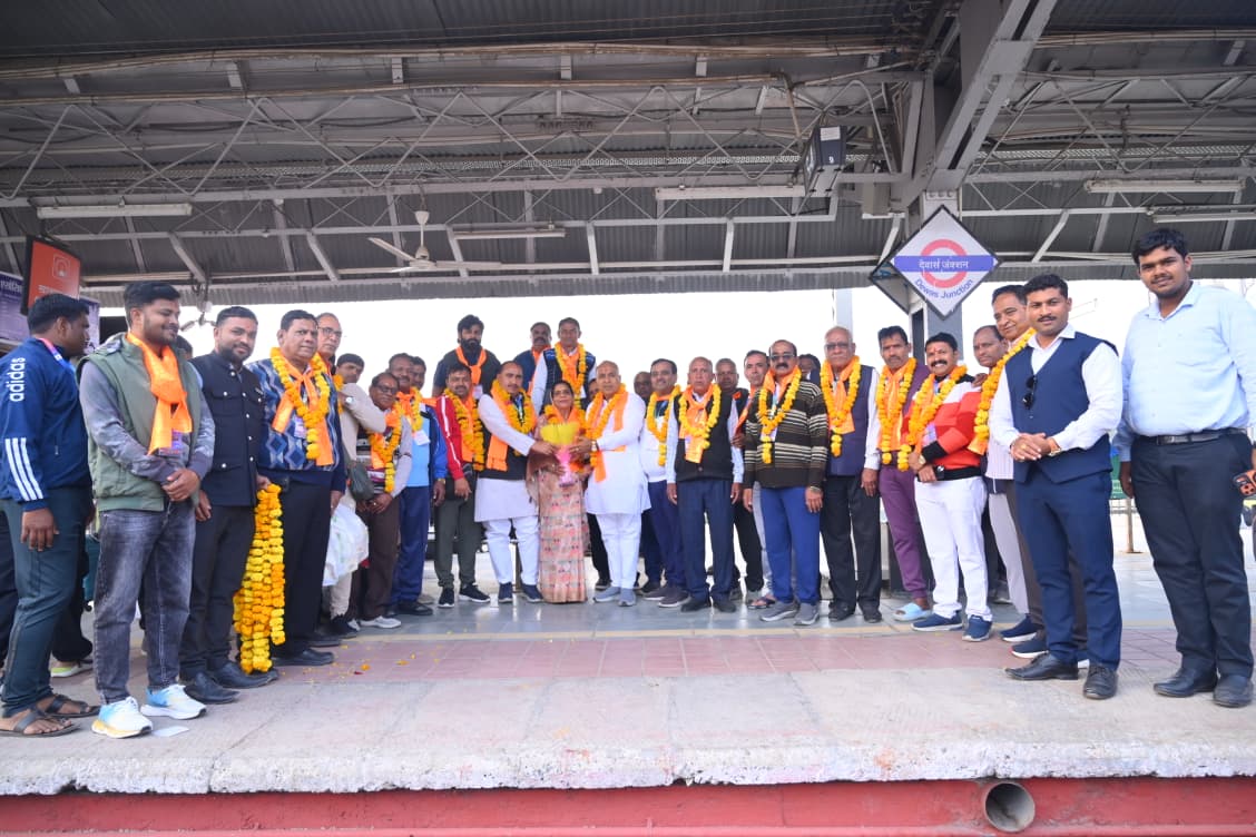 “जय गिरिराज महाराज” के जयघोष से गूंजा स्टेशन, पुष्पवर्षा के बीच श्रद्धालुओं का किया स्वागत