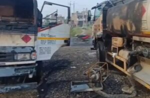 सिंगावदा में दो डीजल टैंकरों में भीषण आग