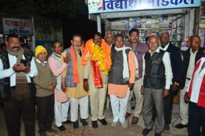 मंडी कर्मचारियों ने पुष्पमाला पहनाकर उनका स्वागत किया। एमजी रोड से होते हुए यात्रा बस स्टैंड होते हुए निजी गार्डन पहुंची। इस दौरान नगर के वरिष्ठजनों व युवाओं ने स्वागत कर सफल कार्यकाल की बधाई दी।