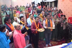आरती के समय महापौर गीता अग्रवाल, महापौर प्रतिनिधि दुर्गेश अग्रवाल, भाजपा नेता गणेश पटेल, धर्मेंद्र सिंह बैस, मनीष सोलंकी, शेखर कौशल, अतुल बागलीकर, भजन मंडल की वीणा कानूनगो, शैलू दुबे, सपना महाजन, शोभा महाजन, मोड़ समाज से दामोदर गुप्ता सहित बड़ी संख्या में श्रद्धालु उपस्थित रहे। कार्यक्रम की जानकारी महिला मंडल की विनिता व्यास ने दी।