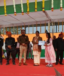 गणतंत्र दिवस जिला स्तरीय मुख्य समारोह झाबुआ में कार्यपालक निदेशक द्वारा उत्कृष्ट कार्य हेतु प्रेषित किए गए प्रशस्ति पत्र से जिला समन्वयक प्रेमसिंह चौहान, विकासखंड समन्वयक तोलिया डामोर झाबुआ, डॉ. रीना मिश्रा मेघनगर प्रवीण पवार पेटलावद, तेजसिंह देवरामा, वर्षा डोडियार थांदला को कलेक्टर नेहा मीणा एवं पुलिस अधीक्षक डॉ. शिवदयाल सिंह द्वारा प्रशस्ति पत्र प्रदान कर सम्मानित किया गया।