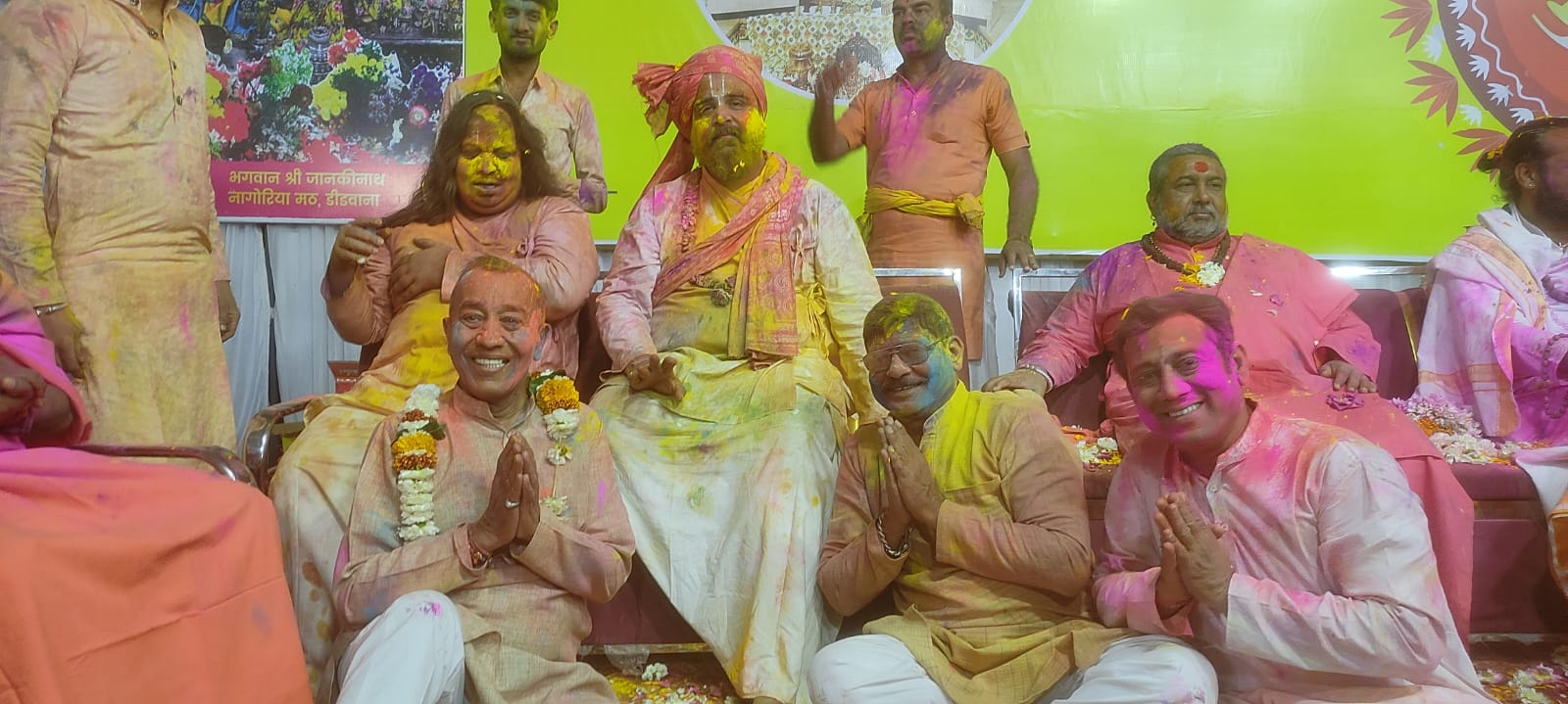प्रारंभ में स्वामीजी ने ठाकुरजी के श्रीविग्रह का पूजन कर गुलाल लगाया तथा उपस्थित सभी संतजनों का अभिनंदन किया। भजन गायक प्रदीप मंत्री ने फाग के भजन सुनाकर सभी को प्रेम रंग में रंग दिया। समर्पण भाव का भजन “ऐ चमक, ऐ दमक, फूलवन में महक, सब कुछ सरकार तुम्हीं से है, मेरी गाड़ी, मेरा बंगला, मेरा पैसा सब तेरा, सब कुछ तेरो सरकार, मेरा तो कुछ भी नहीं” पर महिला-पुरुष सभी ने नृत्य किया।