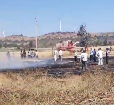 खेत में लगी आग से 3 बीघा गेहूं का भूसा जलकर राख