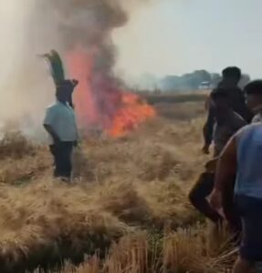 ग्राम भीमाखेड़ी में खेत में आग लगने से एक बीघा गेहूं की फसल जलकर खाक