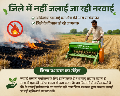 नरवाई जलाना पर्यावरण के लिए हानिकारक है तथा वायु प्रदूषण बढ़ाता है साथ ही मृदा की उर्वरक क्षमता भी कम करता है। हम किसानों से अपील करते हैं कि वे नरवाई प्रबंधन यंत्रों का उपयोग करें तथा जिला प्रशासन द्वारा उपलब्ध कराई जा रही सुविधाओं का लाभ लें।