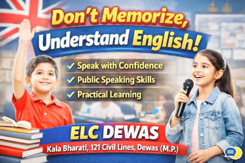 इसी सोच को ध्यान में रखते हुए ELC (English Learning Center) देवास ने बच्चों के लिए एक विशेष कोर्स तैयार किया है। यह कोर्स पारंपरिक तरीके से हटकर बच्चों को अंग्रेजी को समझने, बोलने और आत्मविश्वास के साथ प्रस्तुत करने की ट्रेनिंग देता है।