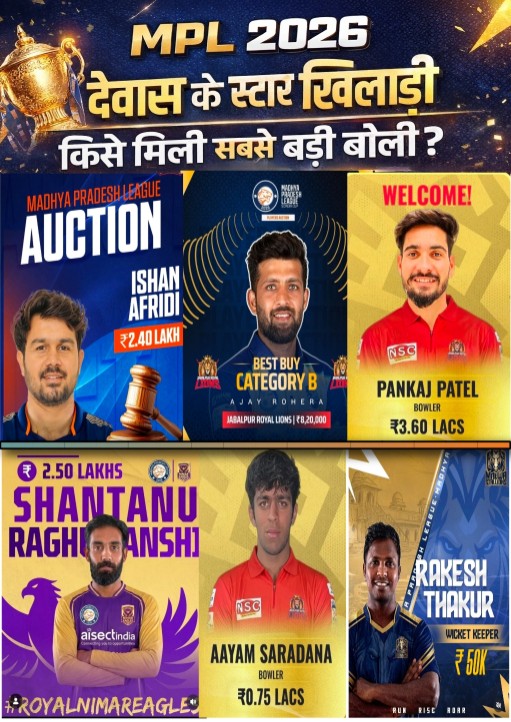 MPL 2026 के ऑक्शन में देवास के खिलाड़ियों को अलग-अलग टीमों ने खरीदा है, जो उनकी प्रतिभा का बड़ा प्रमाण है।