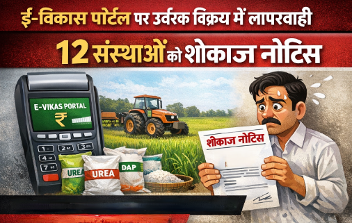 ई-विकास पोर्टल के माध्यम उर्वरक विक्रय न करने पर 12 संस्थाओं को शोकाज नोटिस