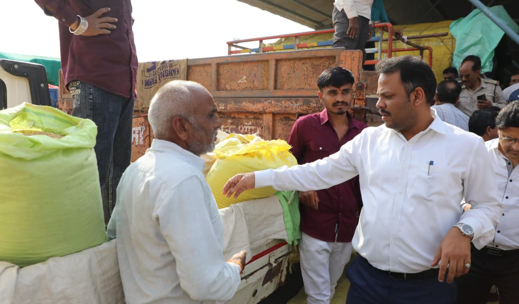 कलेक्टर ऋतुराज सिंह ने देवास मण्डी में सोयाबीन उपार्जन कार्य का निरीक्षण किया