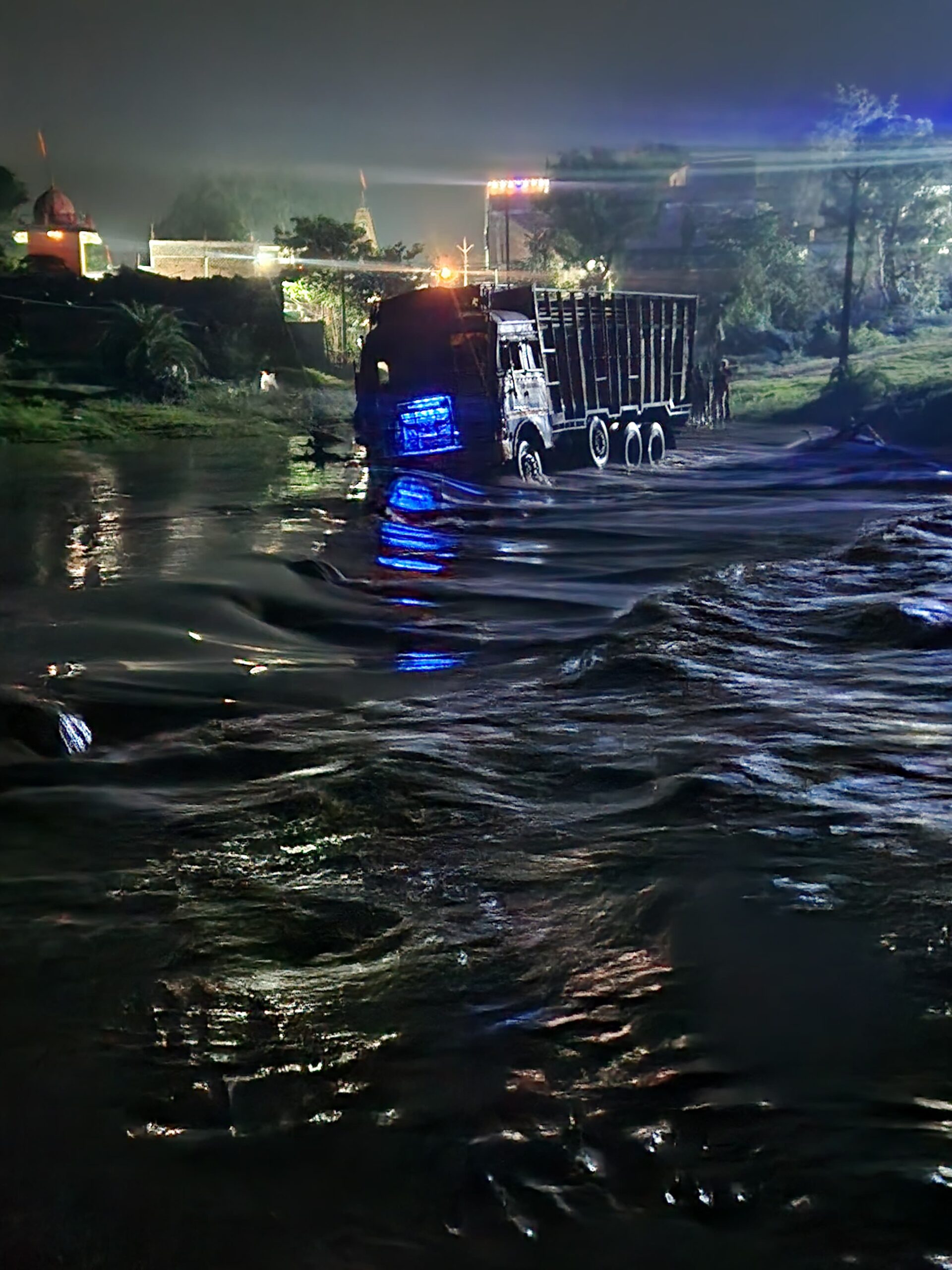 तेज बारिश से ग्राम नारियाखेड़ा का रपटा उफना